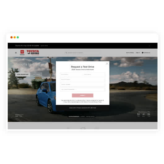 If you don’t already have “Schedule a Test Drive” as an option on your website, you can leverage this call-to-action (CTA) within your Express Store. This is an attractive option for customers who, because of COVID concerns, prefer to only come into your showroom during their designated appointment time, and for those who prefer to test drive their vehicle at home.