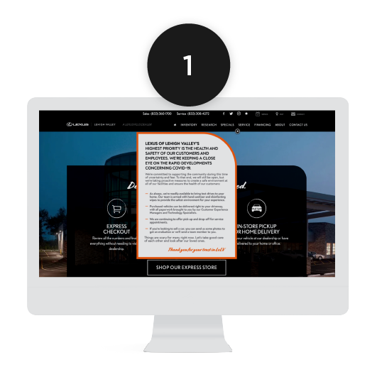 Emphasize your ability to offer at-home, “contactless test drives”. Consider updating your website CTAs to read “contactless test drives” or “at-home test drives,” and feature this prominently on your website banners.