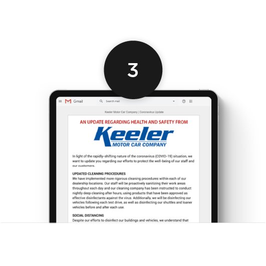 Check if there are OEM programs available to help customers who may be suffering financial hardships because this pandemic, yet still need to buy a car or make payments. For example, both Ford and GM have released payment relief and deferral plans geared toward helping current owners and buyers delay or reorganize payments, if needed. You can integrate these OEM resources into your messaging to alert your customers about their options.