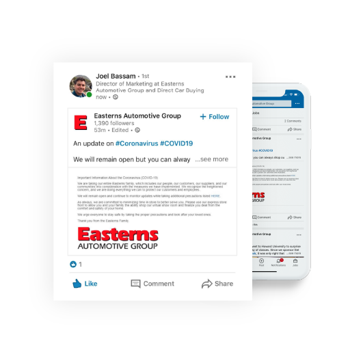 Below are some examples of ways our dealers are engaging their audiences on Facebook, Instagram and Linkedin. If you’d like to learn how to optimize your images for social media, please refer to our Social Media Image Guidelines.