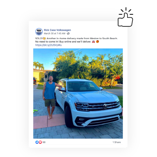 Social media can be a quick, inexpensive way to notify your customers about your “contactless car-buying” options. You can post how-to videos explaining how your online shopping experience works, or share positive reviews from customers who bought their cars online.