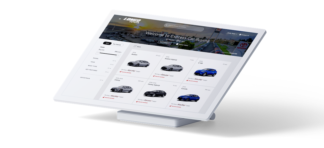 Roadster partnered with Longo Toyota in 2016, providing them with an innovative omnichannel commerce experience that enabled flexible purchasing solutions. Customers enjoy the ability to start on a purchase path, building their own deals and picking up where they left off. This puts the control in the customer’s hands. Sales agents no longer need to bounce from guest to sales manager to settle on pricing. Most sales people can configure the transaction quickly at their desks and spend more time understanding the guest’s needs versus pricing concerns.