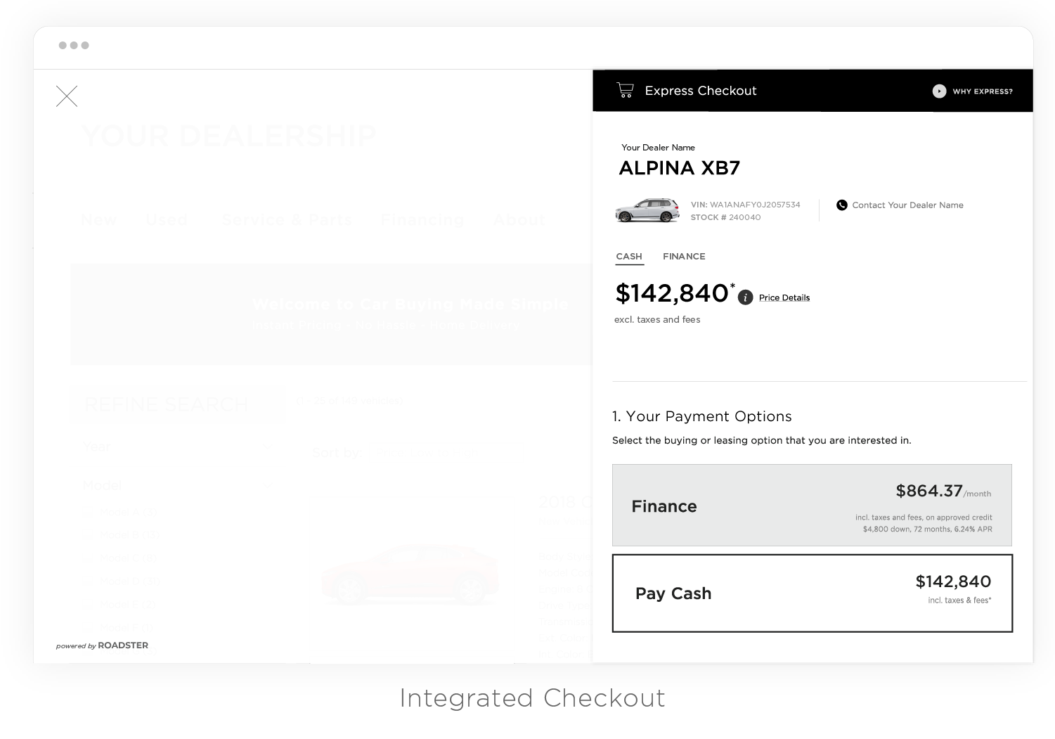 Allow customers to factor their trade-in value into the deal using Roadster’s Express Trade® or a third-party trade solution of your choice*.