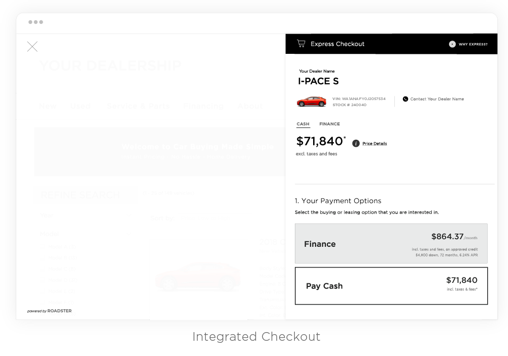 Allow customers to factor their trade-in value into the deal using Roadster’s Express Trade® or a third-party trade solution of your choice*.