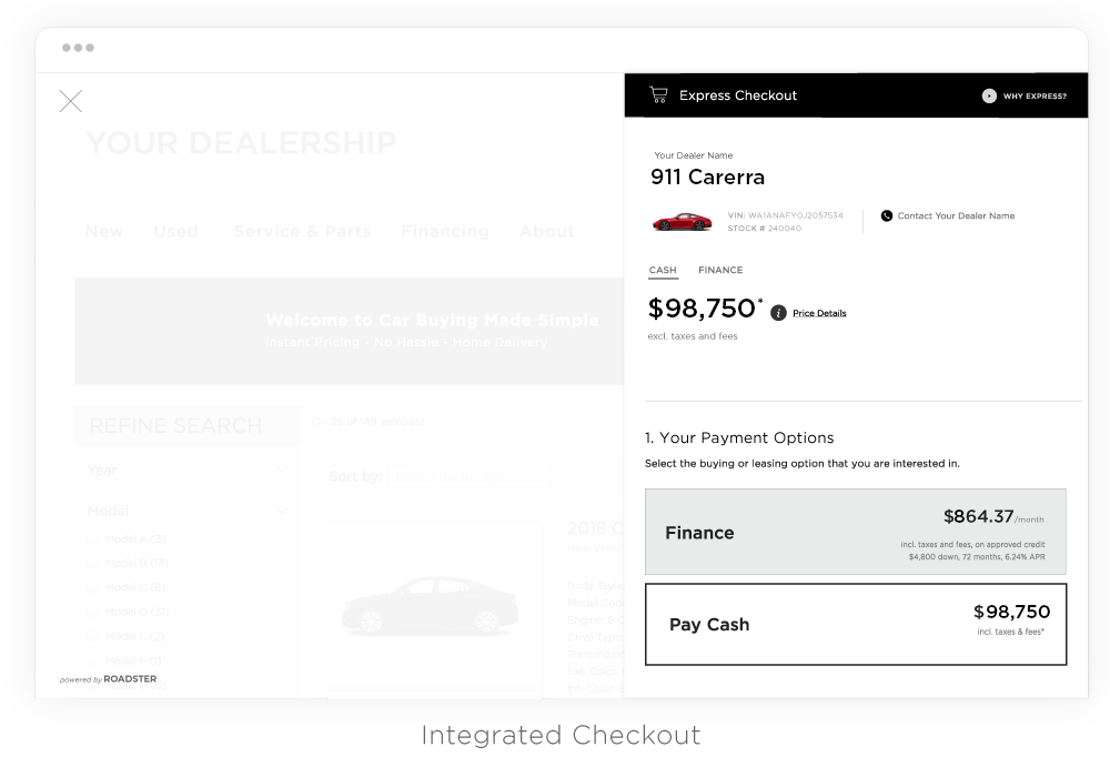 Roadster is pleased to help Porsche dealers provide consumers with a better car-buying experience online and in store — one that is modern, seamless and streamlined. Our Omnichannel Commerce platform, Express Storefront, has helped dealerships dramatically increase CSI and sales efficiency, while reducing sales costs. Learn more below.