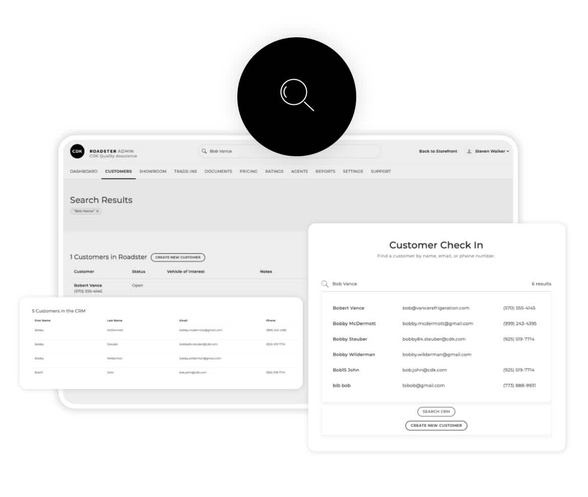 Search for any customer in Roadster Admin or your Express Storefront and the existing Roadster data will appear alongside matching CRM records. This deeper integration streamlines your customer check-in process, making selling more efficient without duplicating data or efforts.