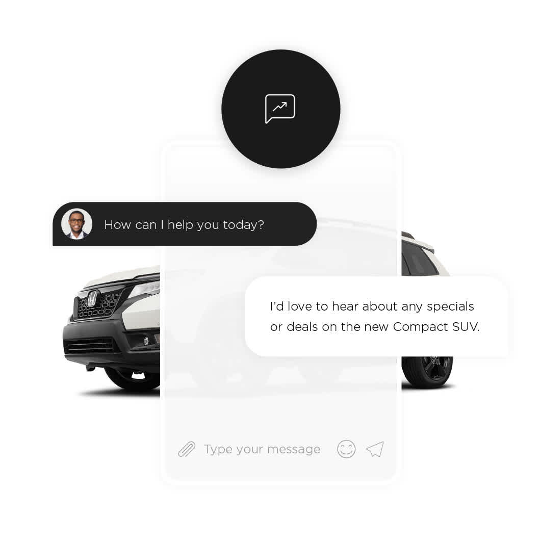 Our new conversational commerce solution leverages our automotive experts’ 10 years of experience and the full functionality of your Express Store. Our live automotive experts respond to customers in seconds, provide detailed answers to their queries and guide them further down the purchase funnel.