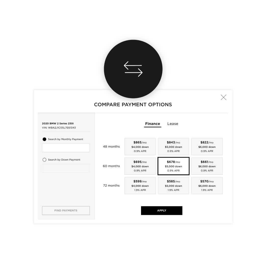 Our new “Compare Payments” feature on the VDP targets specific lease, finance, or down payments in seconds, without having to pencil a new deal with each adjustment.