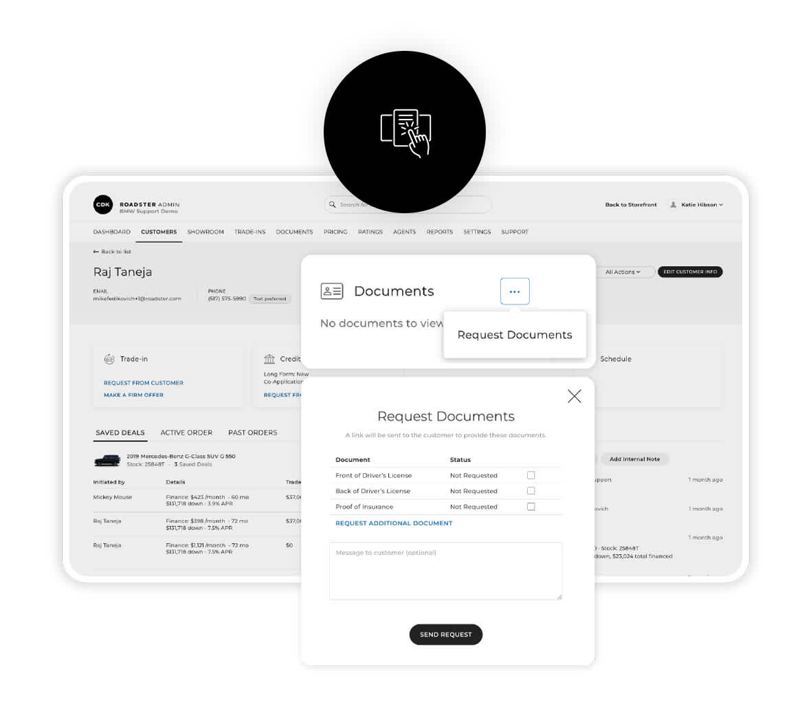 It’s now easier than ever to customize the purchase process in Roadster Admin. Sales agents can request customer documents at any point without waiting for a submitted order. Agents can also send an open-ended document requesting any other pertinent documentation.